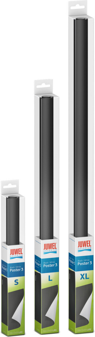 Juwel Poster 3 is Black & White. Deze Poster brengt op indrukwekkende wijze de individuele inrichting van jouw aquarium tot uitdrukking. De twee motieven Zwart en Wit genereren een bijzonder driedimensionaal effect en zorgen voor een interessant contrast ten opzichte van vissen en planten. Om een zeer plastisch en licht effect te verkrijgen adviseren wij het vasthechten met Juwel Poster Fix.