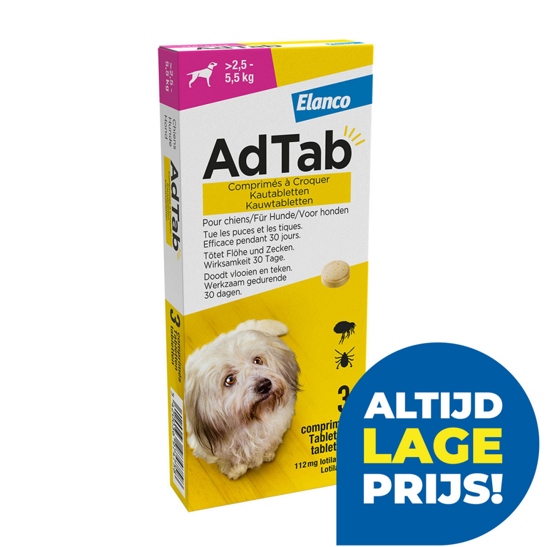 AdTab kauwtabletten doodt vlooien en teken snel gedurende 1 maand.