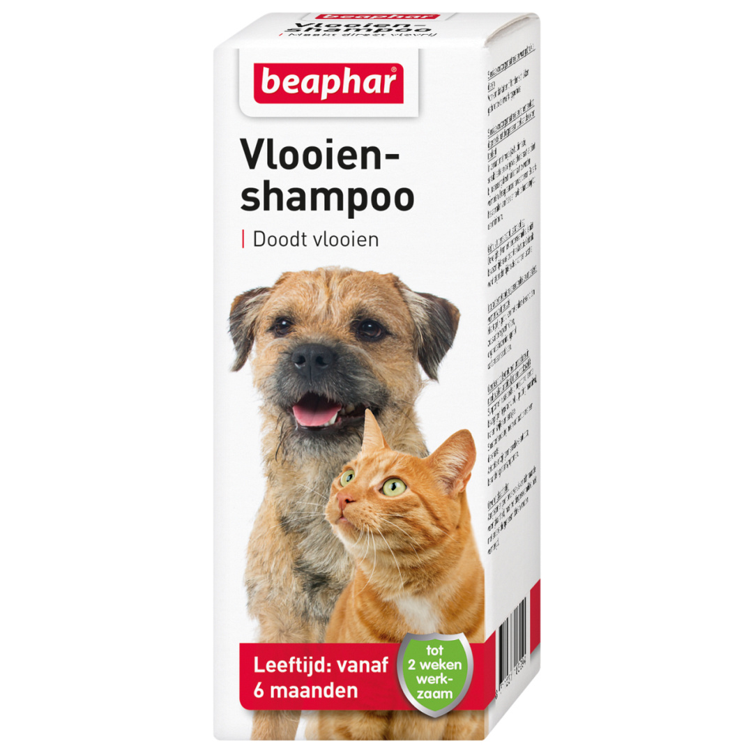 Vlooienshampoo is geschikt voor kortharige honden. Vlooienshampoo werkt op twee manieren:- Knock-Down werking: Tijdens het wassen van de dieren komen de vlooien op het dier in aanraking met permethrine. De vlooien worden hierdoor gedood.- Residue-werking: na het wassen werkt de achter gebleven permethrine nog 1 à 2 weken door.• werkzame stof Permethrine 1% Doodt vlooien op het dier• werkt snel en direct:1-2 weken bescherming tegen vlooienWerkzame stof: Permethrine 1% w/w. Dosering:Honden minder dan 5 kg: 50 ml per dier (= halve fles, zie maatstreep)Honden van 5 tot 10 kg: 100 ml per dier (= hele fles, zie maatstreep)Breng de aangegeven hoeveelheid shampoo aan op de natte vacht van het dier met behulp van (wegwerp)handschoenen. Het gehele lichaam wassen, met uitzondering van de ogen, neus en bek. Gedurende 2 minuten goed inmasseren en ten minste 5 minuten laten inwerken. Daarna grondig spoelen en vacht droogwrijven. Honden niet binnen 2 weken opnieuw behandelen. Voorkom dat honden zich likken gedurende de inwerkingsperiode. Niet gebruiken bij overgevoeligheid voor het product, zieke en herstellende dieren, dieren jonger dan 6 maanden, dieren met huidaandoeningen en tijdens drachtigheid of lactatie.