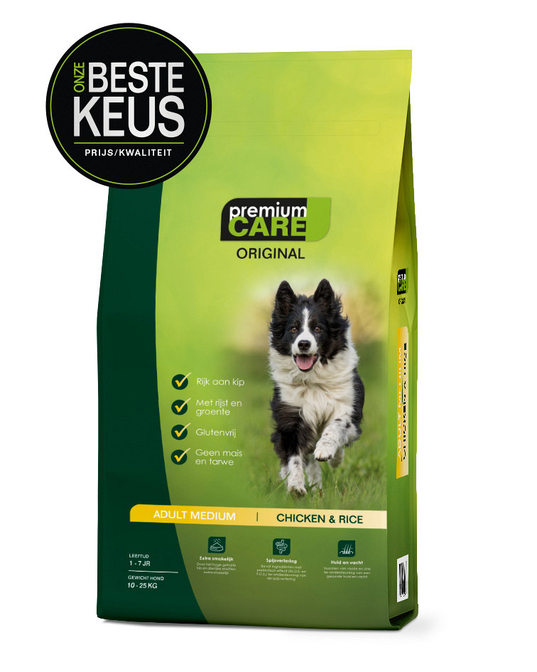 Kijk voor meer informatie over Premium Care op: www.premiumcare-hondenvoeding.nl/adult/medium