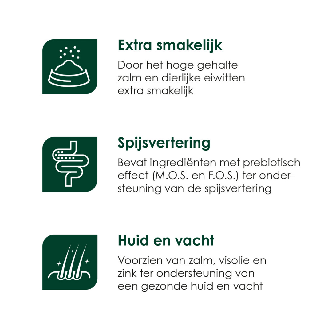 | Extra smakelijk Door het hoge gehalte lam en dierlijke eiwitten extra smakelijk. |