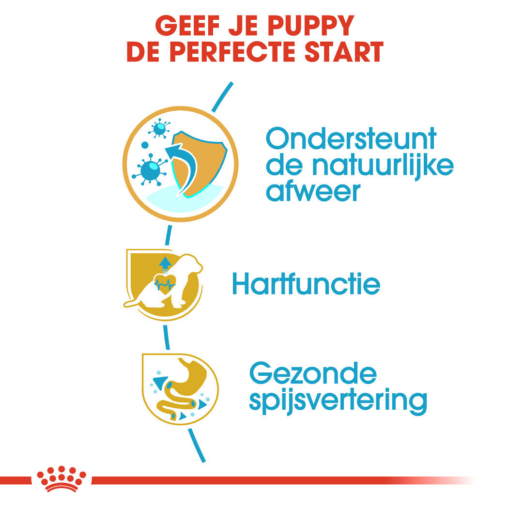 De groei is een essentiële fase in het leven van je hond. Het is een tijd van grote veranderingen, ontdekkingen en nieuwe ontmoetingen. Tijdens deze belangrijke periode ontwikkelt het immuunsysteem van je pup zich geleidelijk. Dankzij een gepatenteerd* complex van antioxidanten (waaronder vitamine E) helpt Cavalier King Charles Puppy de natuurlijke afweer van je pup te ondersteunen.*Frankrijk, patent nr. EP1146870.