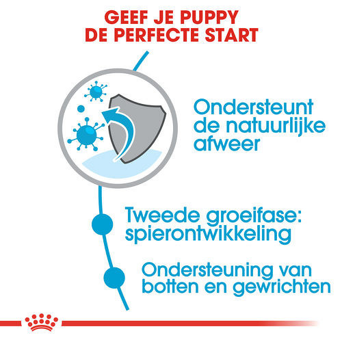 Draagt bij aan een goede mineralisatie van de botten van een pup van een zeer groot ras, dankzij een evenwichtige inname van energie en mineralen (calcium en fosfor), voor ondersteuning van de versterking van het skelet en de gewrichten.