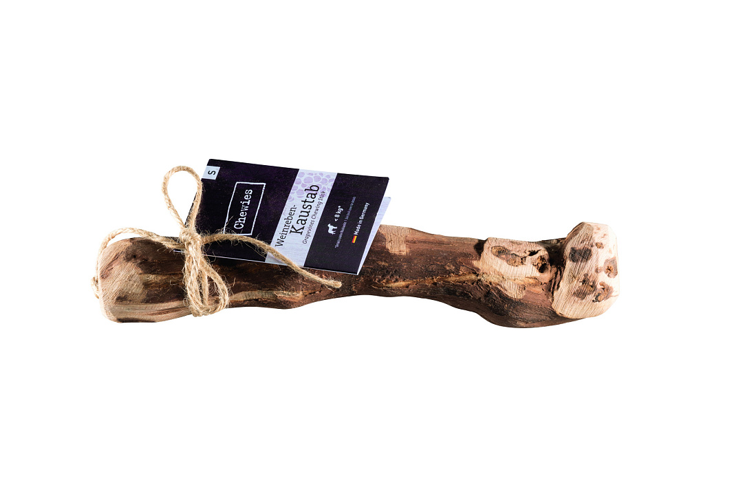 De wijnstok is afkomstig uit regionale wijnbouwgebieden in Baden-Württemberg en wordt geoogst tijdens de jaarlijkse stek. Zoals bij elk kauwproduct kunnen honden met grote bijtkracht de kauwbol stukbijten. Vervang kapotte kauwspeeltjes onmiddellijk.