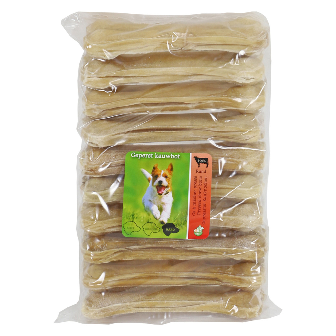 Dit zwaargeperste bot van buffelhuid is van de beste Thaise kwaliteit en is 100% natuurlijk. Dankzij de vorm aan de twee uiteindes van het bot is het uitermate geschikt voor het gebit en tandvlees.