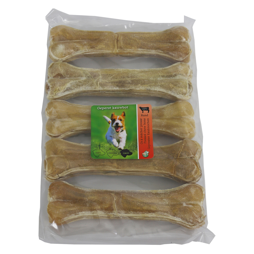 Je hond moet goed kauwen op geperste botten, waarmee het direct een verzorgende werking heeft op het gebit van jouw hond.