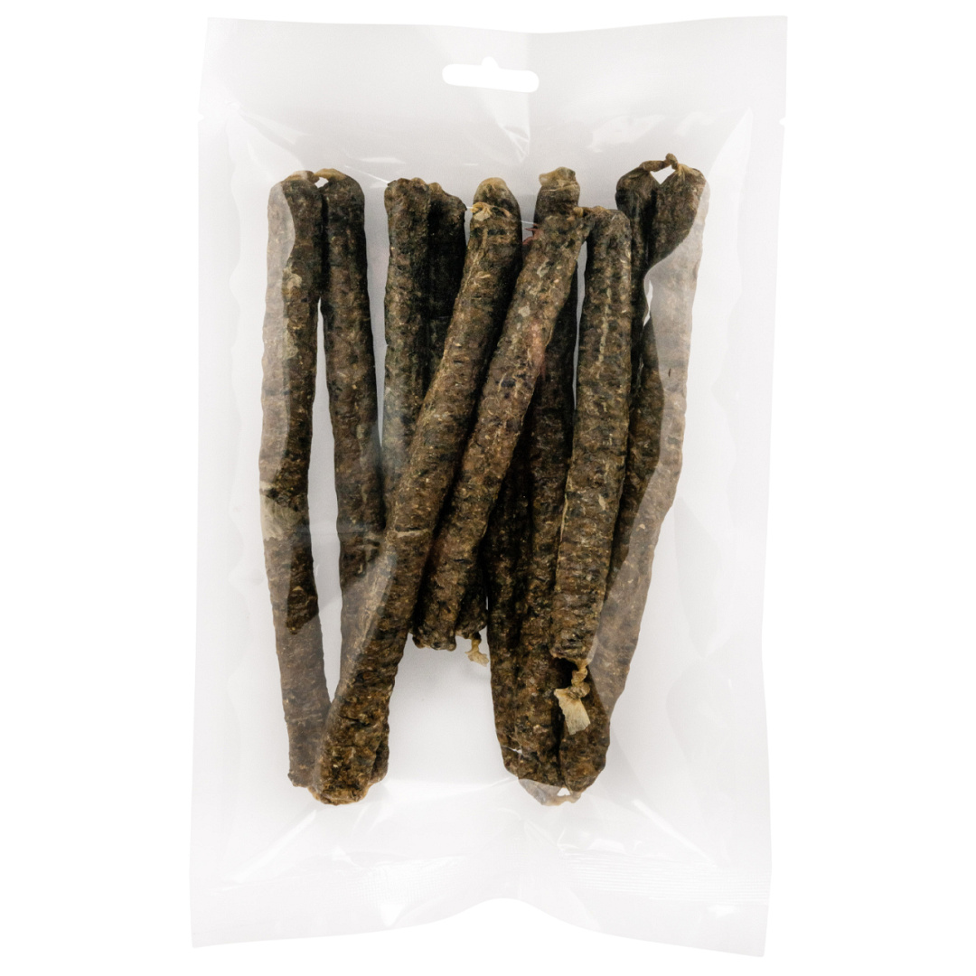 Landman visworstjes zijn zachte worstjes met verschillende soorten vis. Deze natuurlijke hondensnack is makkelijk in stukjes te snijden.