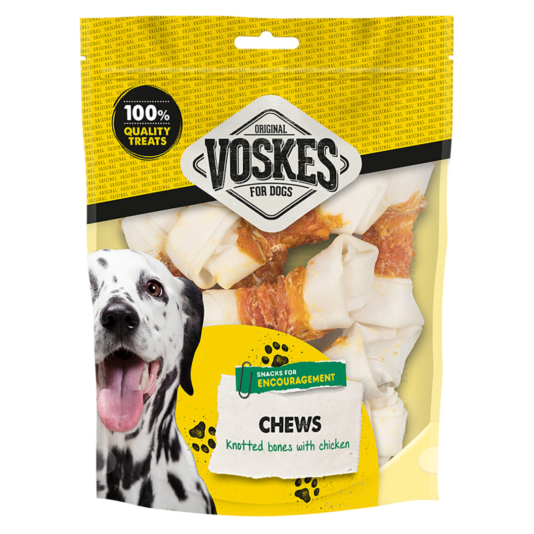 Verwen jouw hond met deze heerlijke hondensnack Voskes kauwknopen met kip. De kauwkluiven zijn gemaakt van blanke runderhuid en kip. Een lekkere natuurlijke hondensnack die het kauwgedrag van jouw viervoeter stimuleert. Bekijk ook onze andere snacks om jouw hond te activeren en bezig te houden