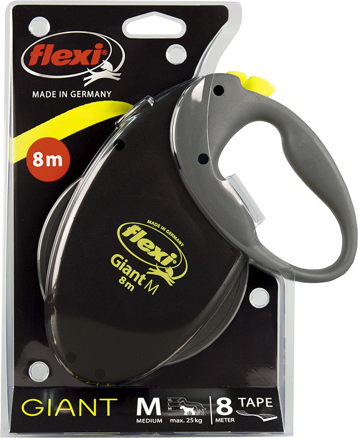 Met deze Flexi kan de lijn op elke gewenste afstand vast gezet worden. Uiteraard kan er daardoor ook bij een gevaarlijke situatie direct ingegrepen worden door de rem in te drukken zodat de hond niet verder kan lopen. De band is geheel geel reflecterend, zodat jij en jouw hond in het donker goed zichtbaar zijn en daardoor veilig aan het verkeer kunnen deelnemen. Deze flexi is geschikt voor honden tot maximaal 25 kg aan lichaamsgewicht.