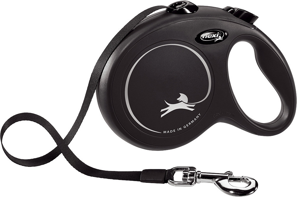 Met deze Flexi kan de lijn op elke gewenste afstand vastgezet worden. Uiteraard kan er daardoor ook bij een gevaarlijke situatie direct ingegrepen worden door de rem in te drukken zodat de hond niet verder kan lopen. Tevens kan men op deze Flexi het Flexi LED Light System behorende bij de Flexi Vario makkelijk aanbrengen op het grote ronde vlak midden op de Flexi, zodat jij en jouw hond in het donker goed zichtbaar zijn. Dit verlichtingssysteem is los te verkrijgen.