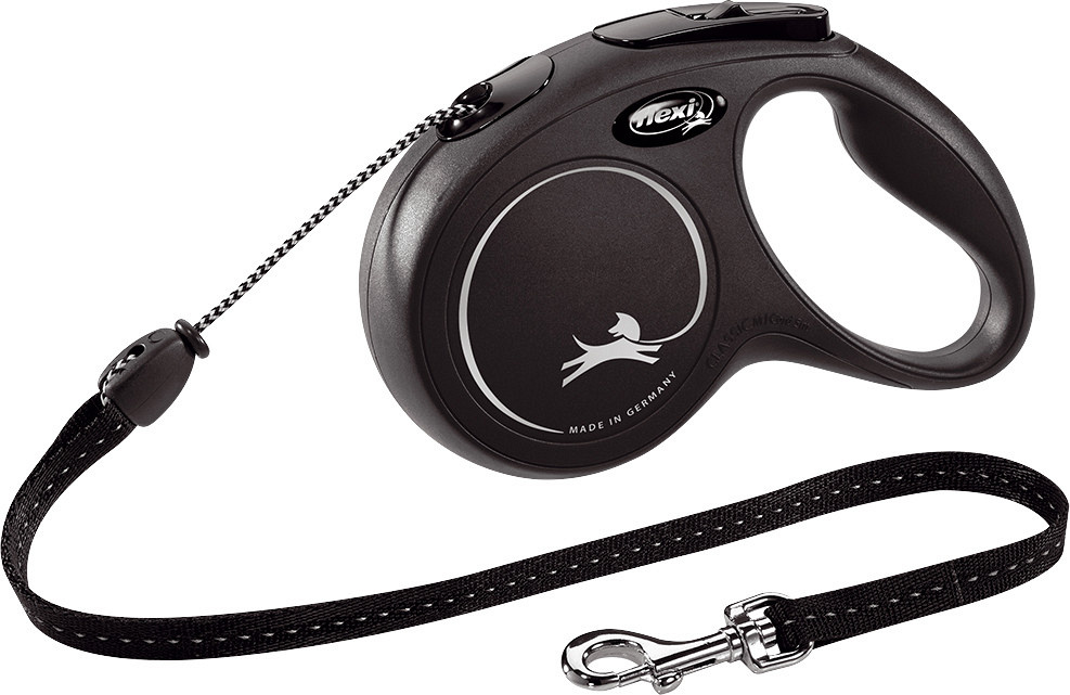 Met deze Flexi kan de lijn op elke gewenste afstand vast gezet worden. Uiteraard kan er daardoor ook bij een gevaarlijke situatie direct ingegrepen worden door de rem in te drukken zodat de hond niet verder kan lopen. Tevens kan men op deze Flexi het Flexi LED Light System behorende bij de Flexi Vario makkelijk aanbrengen op het grote ronde vlak midden op de Flexi, zodat jij en jouw hond in het donker goed zichtbaar zijn. Dit verlichtingssysteem is los te verkrijgen. Deze Flexi is geschikt voor honden tot maximaal 20 kg aan lichaamsgewicht.