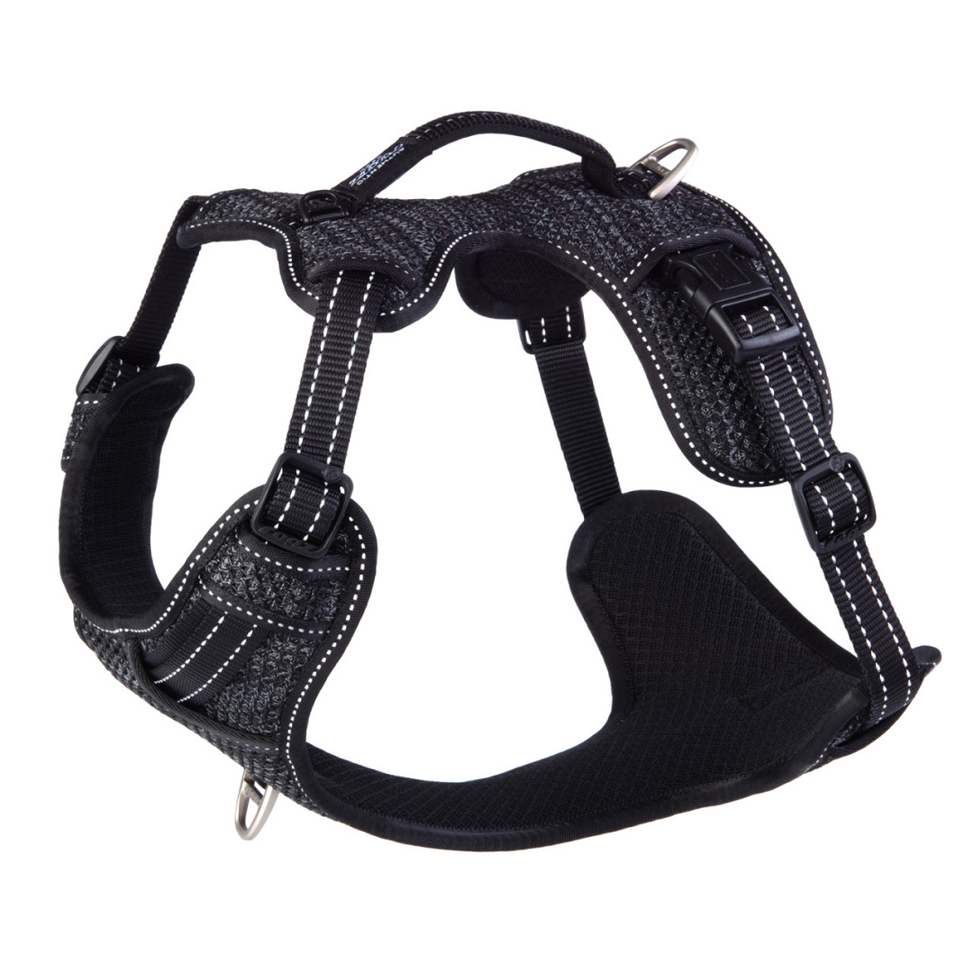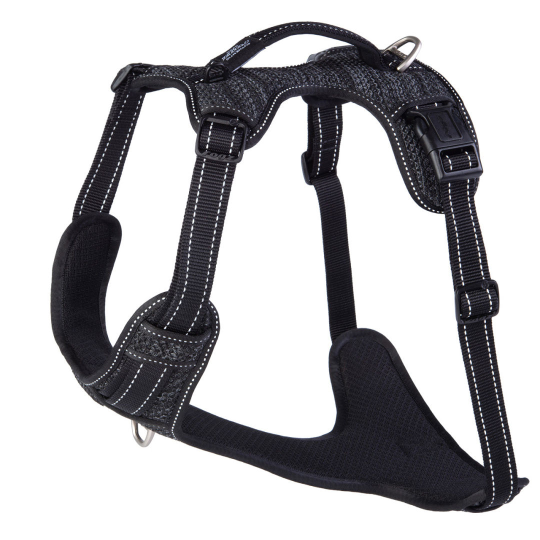 • 1 ring zit op de rug voor dagelijks gebruik en 1 ring zit voor op de borst voor extra controle en sturing.