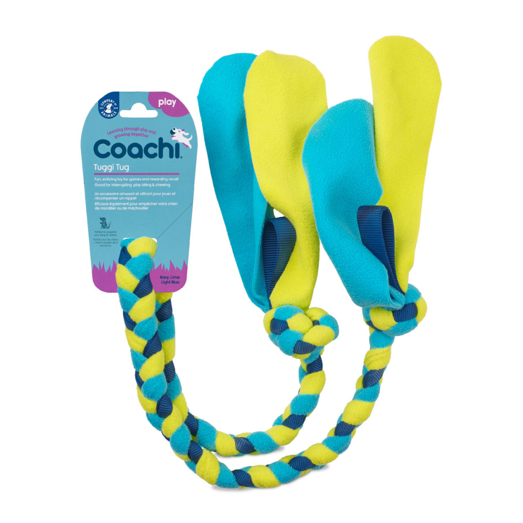 De Coachi Tuggi Tug is geweldig om trekspelletjes mee te spelen. Dit zachte rekbare speeltje zorgt ervoor dat spelen comfortabel is voor zowel jou als je hond. Vervaardigd met extra sterke banden voor het ruigere spel. Behoudt de energie en het enthousiasme door dit speelgoed alleen te gebruiken als onderdeel van interactief spel. Hierdoor blijft het speelgoed een speciale beloning, waardoor het dezelfde uitwerking heeft als bijvoorbeeld een voedseltraktatie.