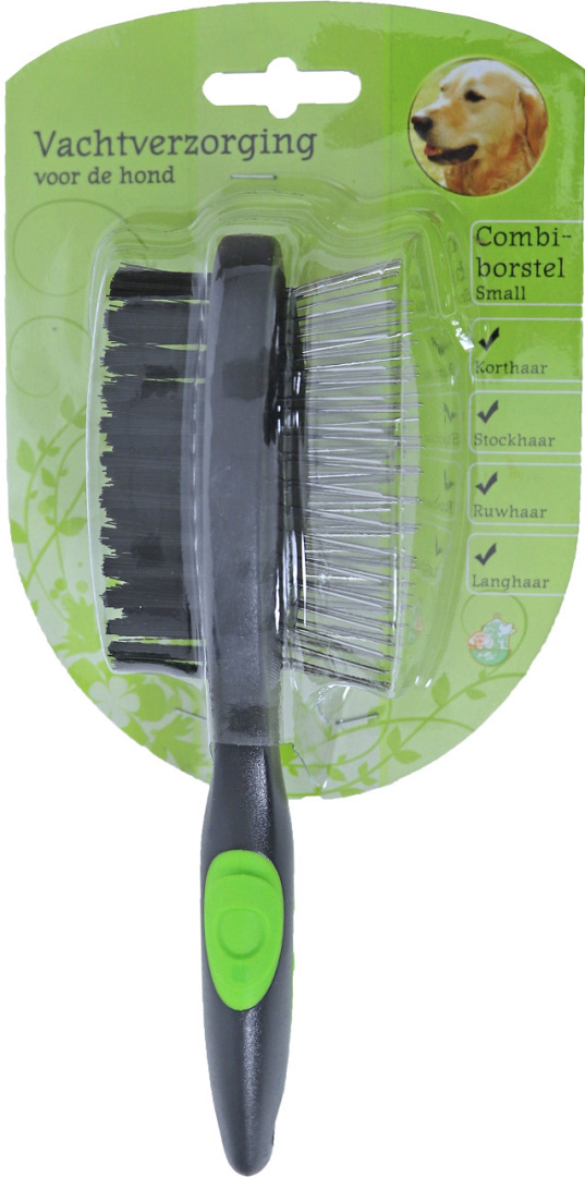 Nylon borstel: door de nylon haren wordt gemakkelijk al het vuil uit de vacht geborsteld.
