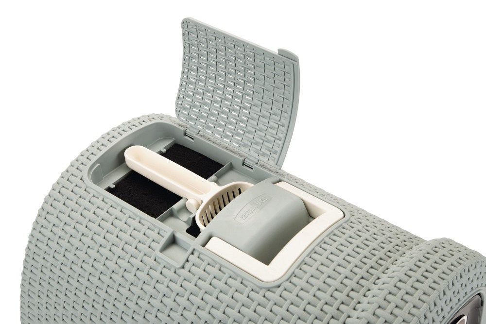 De bak is voorzien van een handig kliksysteem, waardoor de bak niet gaat schuiven en een lade om de kattenkorrels en uitwerpselen makkelijk te kunnen verwijderen. Om geurtjes te vermijden is de bak voorzien van een geurfilter en een voorklep, waardoor jouw kat optimale privacy geniet. En heel praktisch: een bijbehorend schepje vind je boven in het opbergvakje naast het handvat.