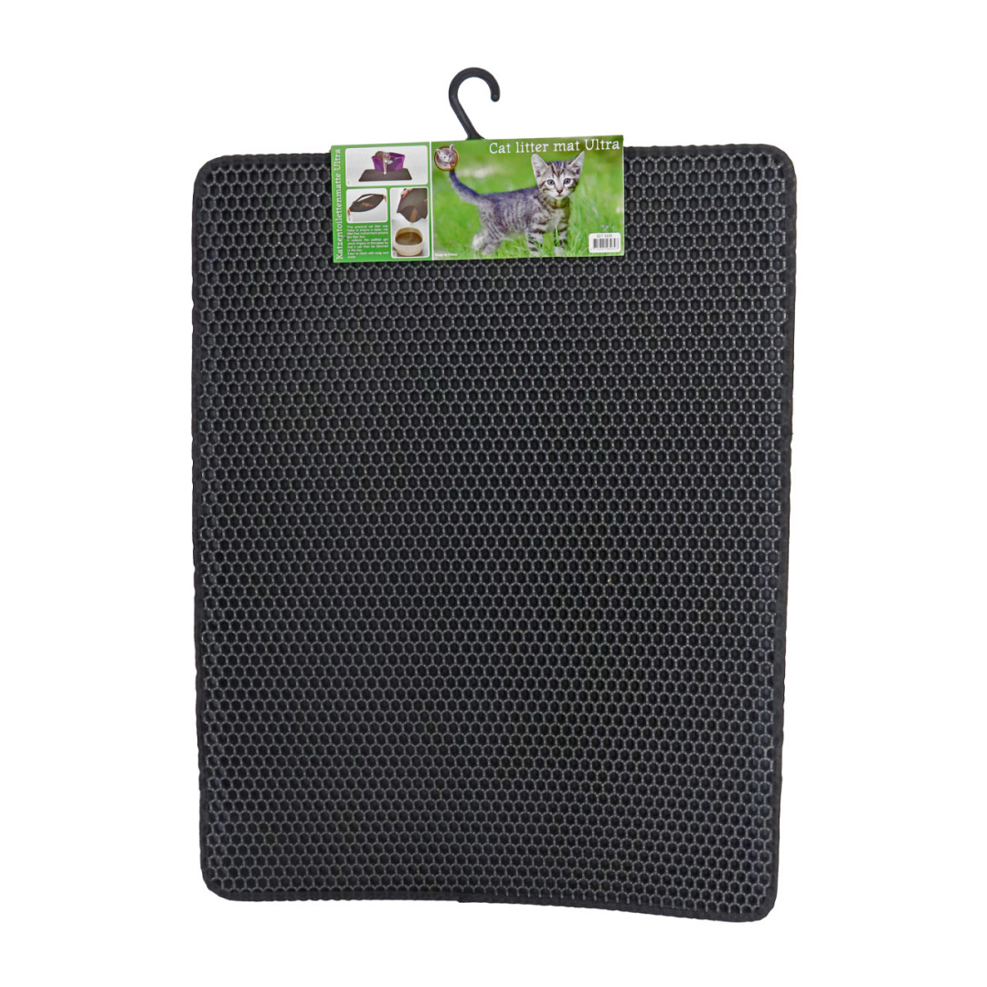 De uitloopmat vangt het kattenbakgrit wat aan de pootjes blijft hangen op zodat het vervolgens weer terug in de kattenbak kan en is eenvoudig te reinigen.