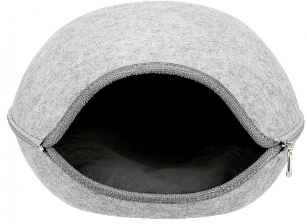Door de pluche bekleding is het heerlijk zacht slapen en het kussen met polyestervlies vulling zorgt ervoor dat het kattenhuisje supercomfortabel is. Ook heeft het mandje een ritssluiting rondom, en kun je het gehele mandje in elkaar plaatsen en dus gemakkelijk opruimen. Een heerlijk, knus en zeer origineel mandje dus!