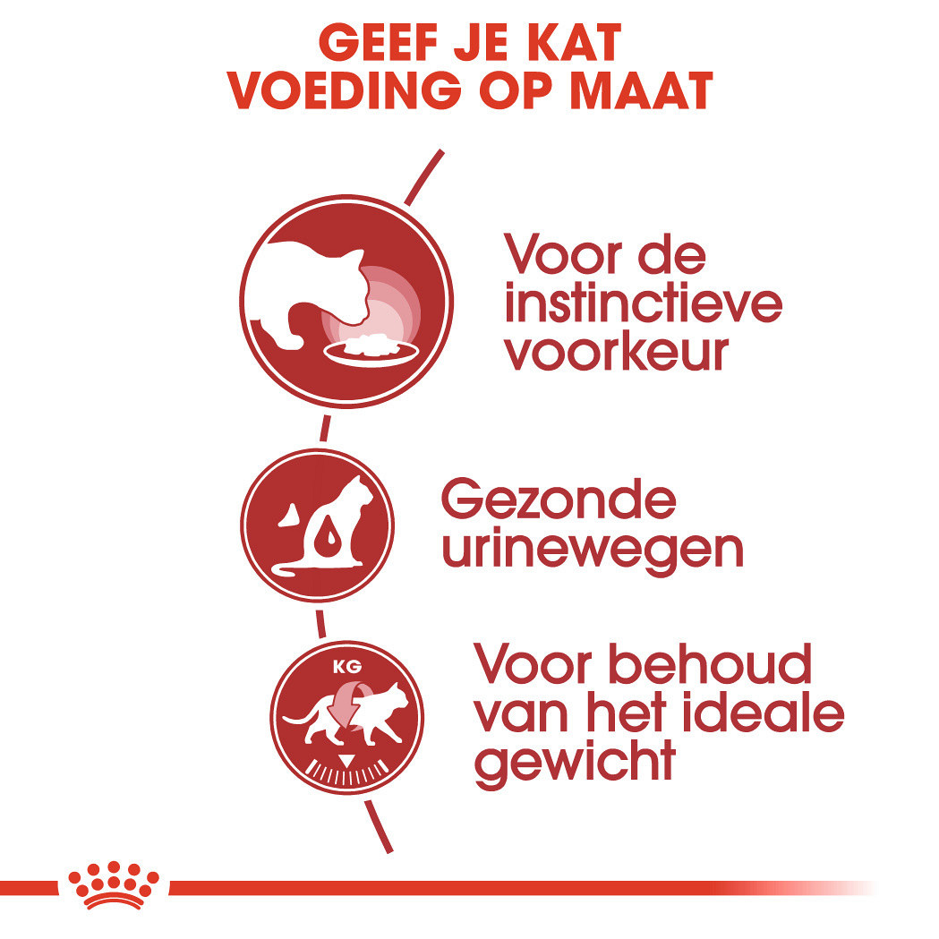 Instinctive heeft een aangepast energiehalte dat helpt om je kat haar gezonde gewicht te behouden. En door een aangepast mineralengehalte ondersteunt Instinctive de gezondheid van de urinewegen waardoor de kans op problemen bij het plassen vermindert.