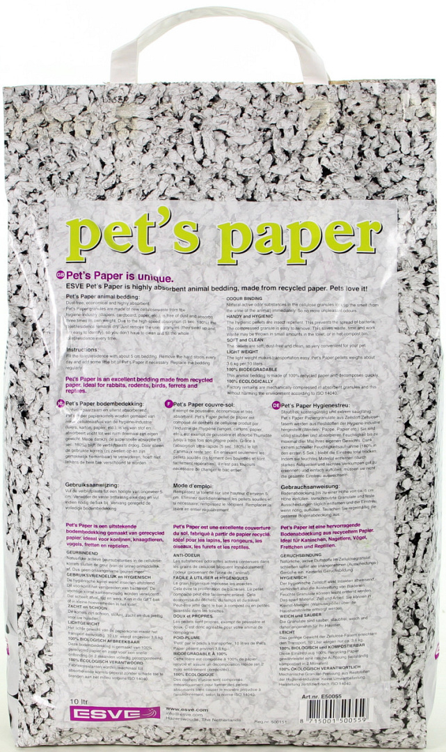 Pet's Paper wordt volgens ISO 14040 geproduceerd. Deze levenscyclus analyse is een methode om de totale milieubelasting te bepalen van een product, vanaf start productie tot en met de afval verwerking. Pet's Paper heeft als uitkomst bij de tests een 'zeer goed'.