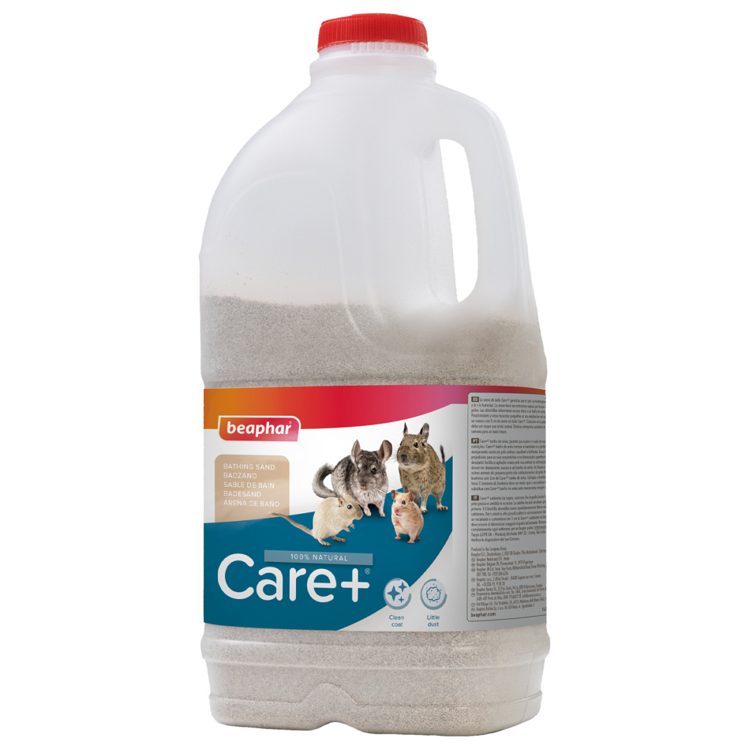 Zet dagelijks ± 10 minuten een bak of kom in de kooi, waarvan je de bodem bedekt met 2 à 3 cm Care+ badzand. Het is belangrijk dat jouw knaagdier zich vrij kan bewegen in de bak. De grootte van de bak dient dan ook iets groter te zijn dan jouw huisdier.