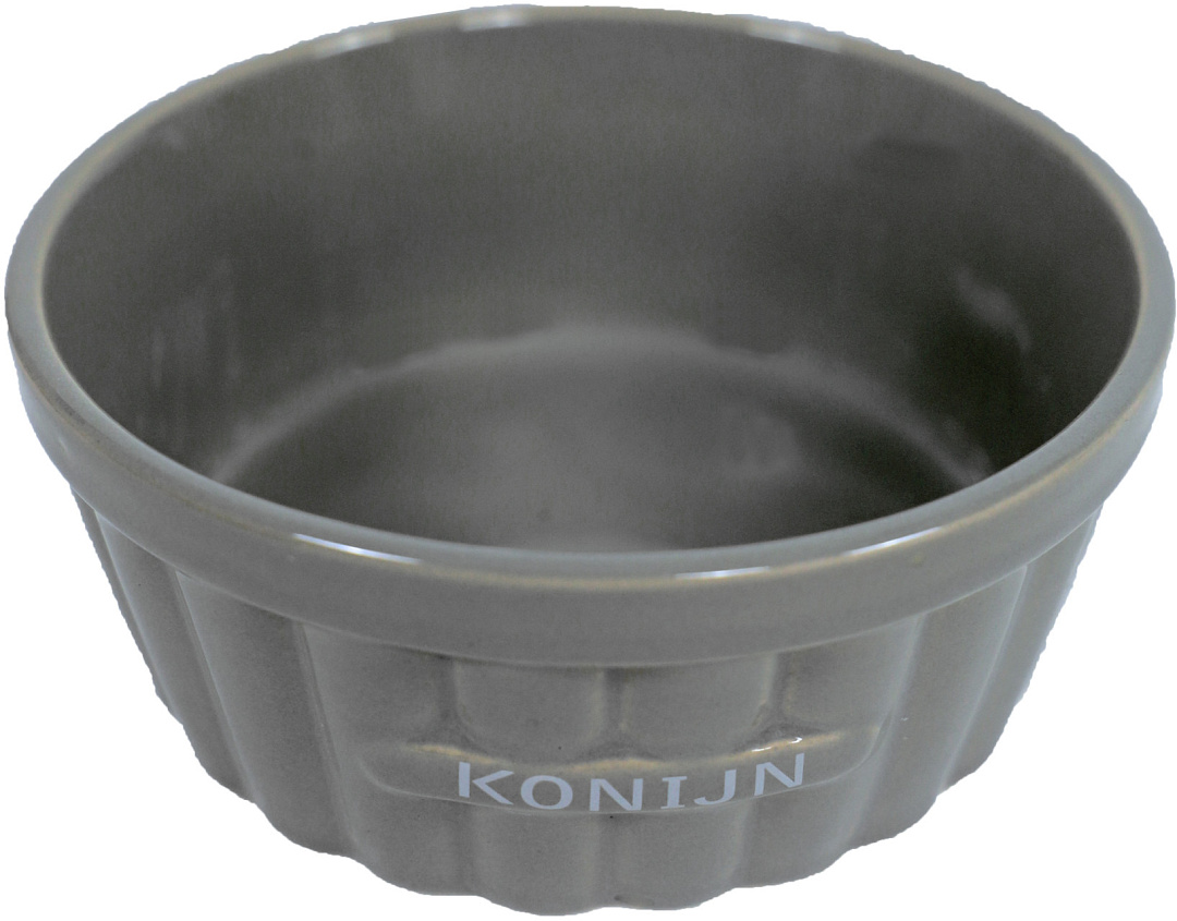 Konijnen voerbak steen ribbel taupe 12 cm