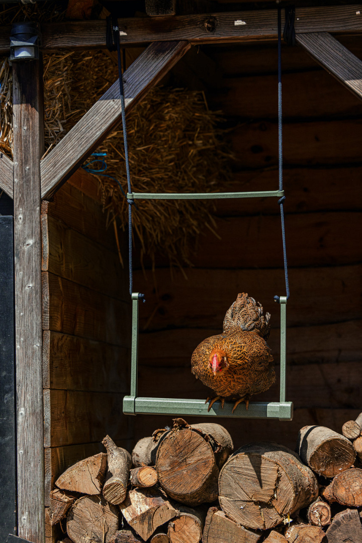 De kippenschommel is voorzien van 2 touwen met een lengte van 2 meter. Is de kippenschommel toe aan een reinigingsbeurt? Dan kan je deze in de vaatwasser reinigen op eco-stand. De kippenschommel is ook nog eens ecologisch verantwoord, deze is namelijk gemaakt van 100% gerecycled plastic afkomstig van ca. 42 drinkpakken. Het meegeleverde touw is gemaakt van gerecyclede PET flessen.