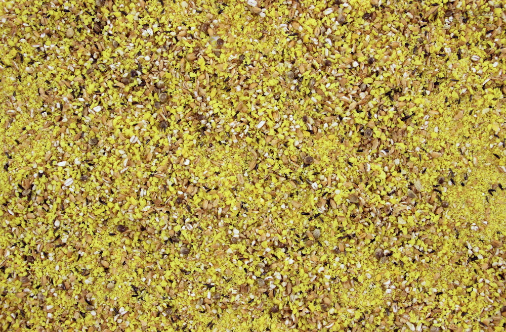 Samenstelling: Vogelpaneermeel, tarwe, suikerstroop, honing, nigerzaad, hennepzaad, melkpoeder.